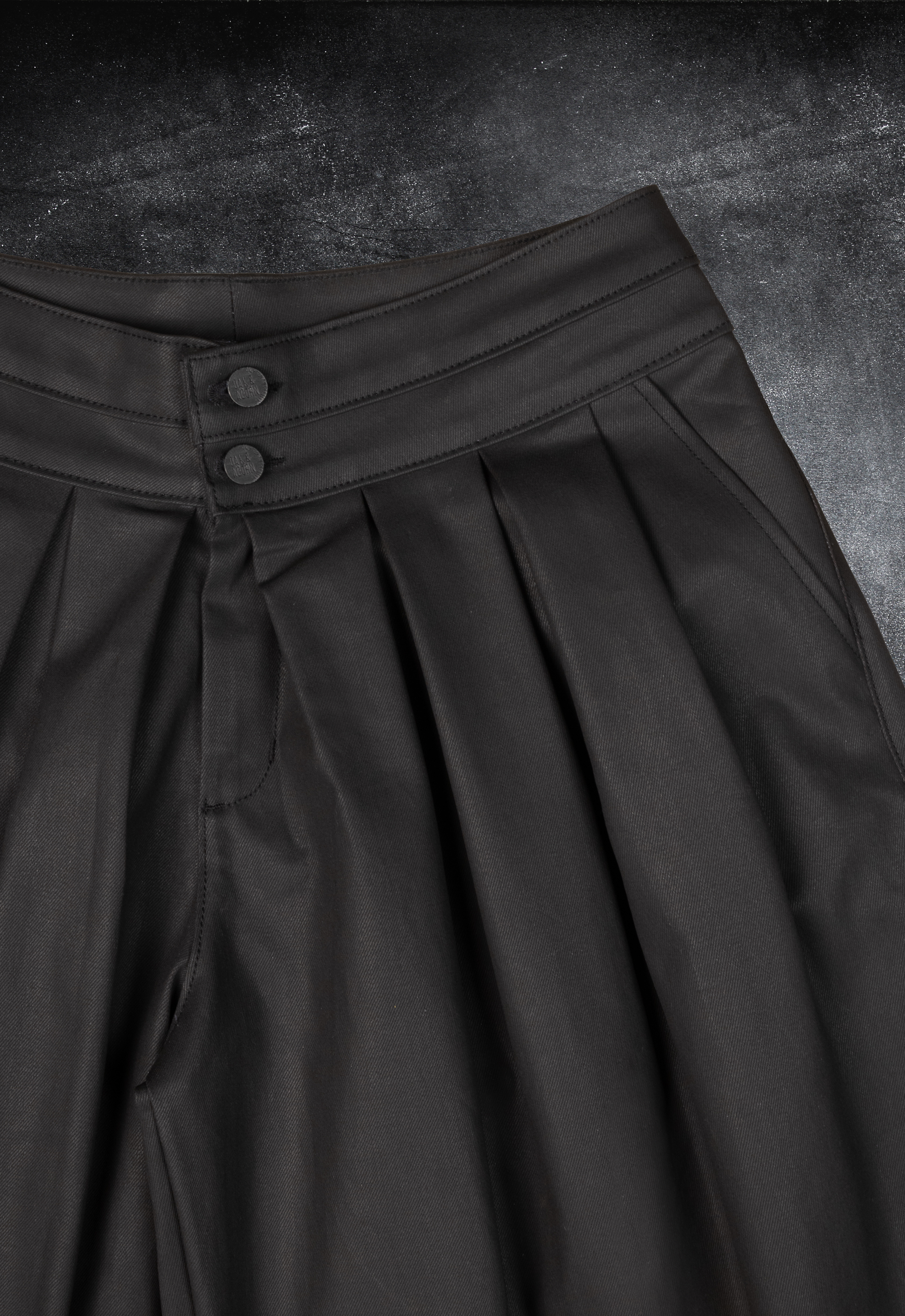 The Namo Super Wide is a pleated low-rise denim trouser with bold attitude & structure. The Namo features a double waistband and is made with coated denim, giving it a leather-like finish that commands attention. It’s a piece built for presence - grounded in denim tradition, yet reshaped into something strikingly modern.