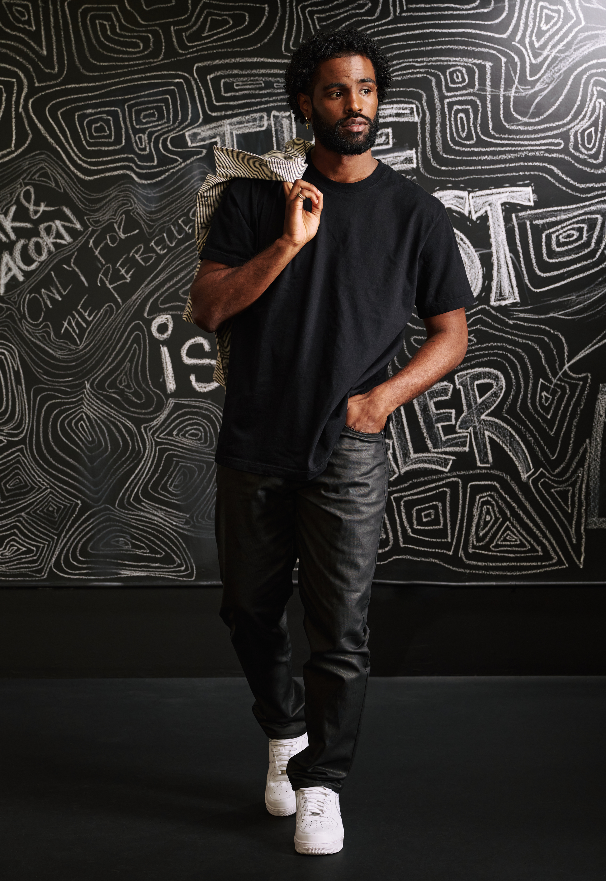Nine X is a slouchy tapered jean made from coated denim that gives a leather-like look.