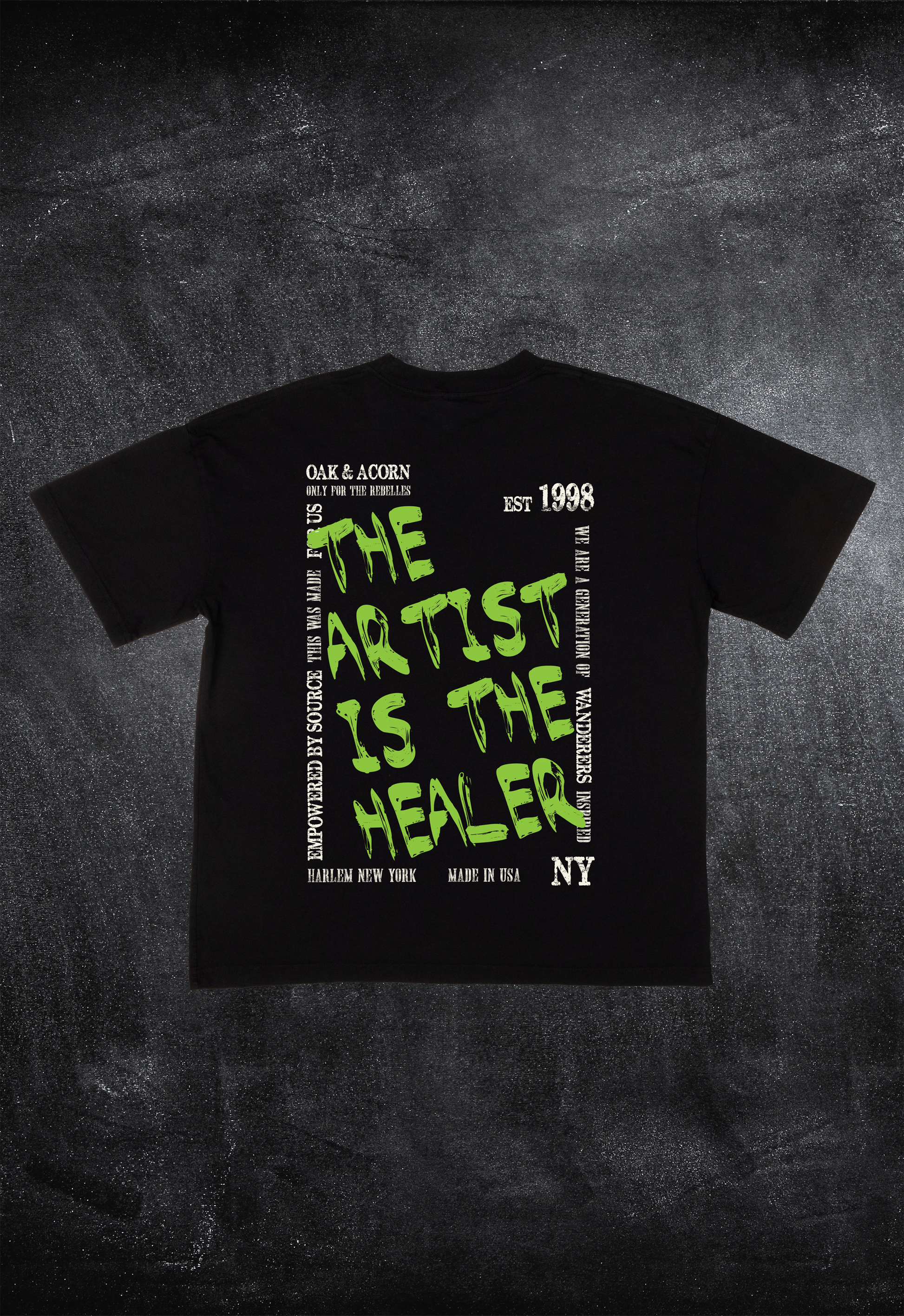 'The Artist is the Healer' Oversized Tee is made from mid-weight cotton jersey and features graphic prints on both from & back.